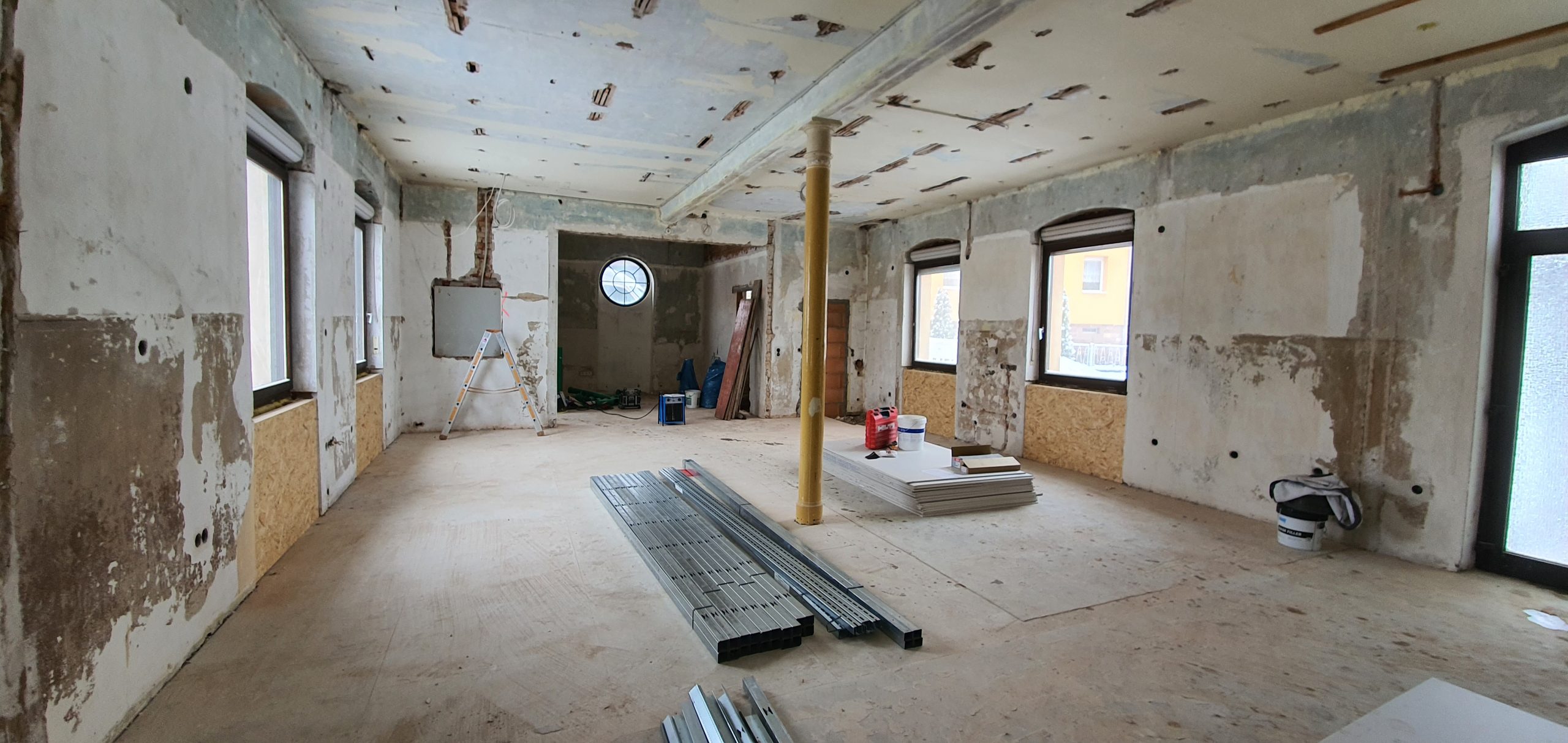 Im Rahmen dieses Projekts wurde ein ehemaliges Wohnhaus der Schwestern der Kirche umfassend modernisiert und in einen funktionalen Kinderhort umgebaut. Die Arbeiten umfassten den kompletten Innenausbau, einschließlich Sanierung und teilweisem Neuaufbau des Innenputzes, um eine saubere und tragfähige Grundlage für die neue Nutzung zu schaffen.