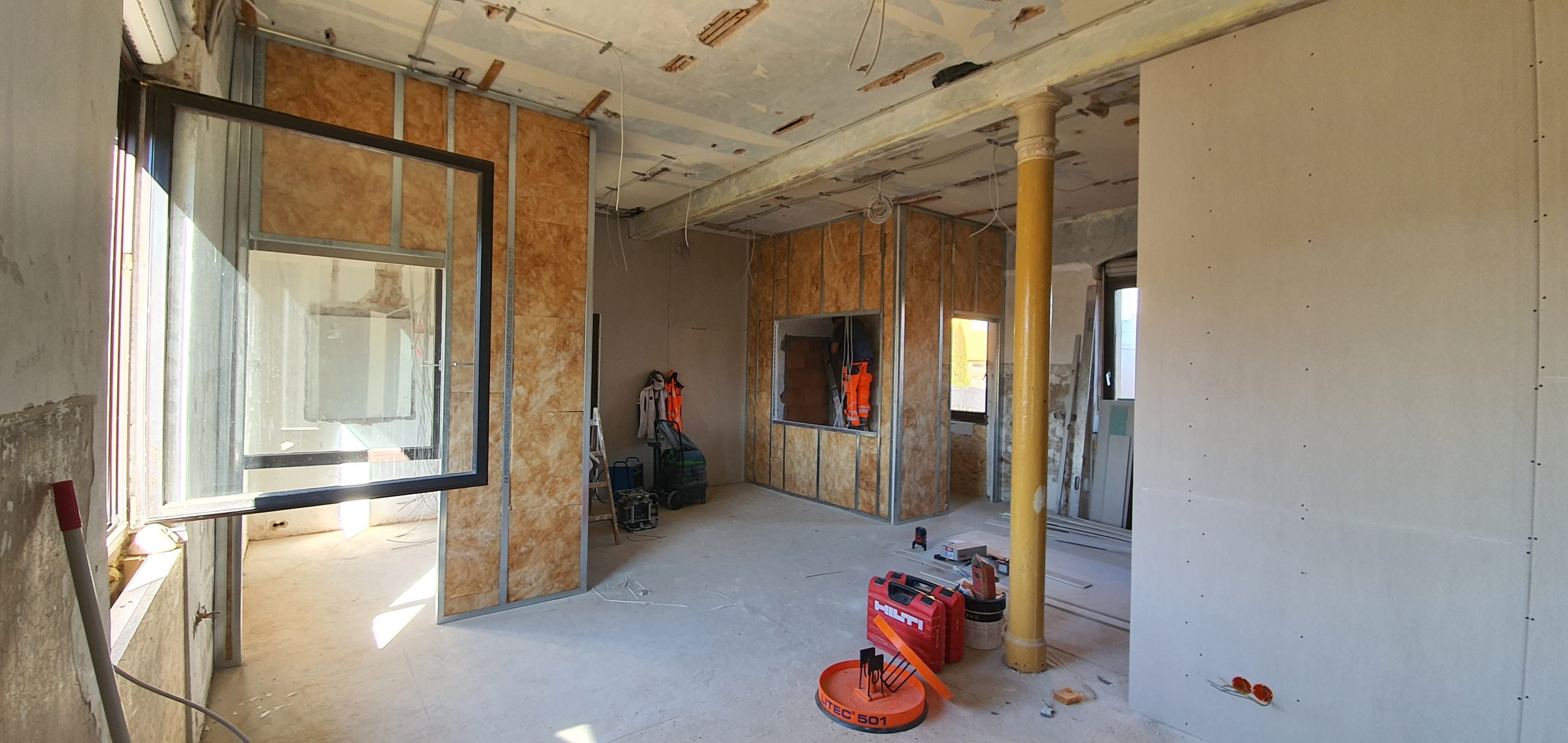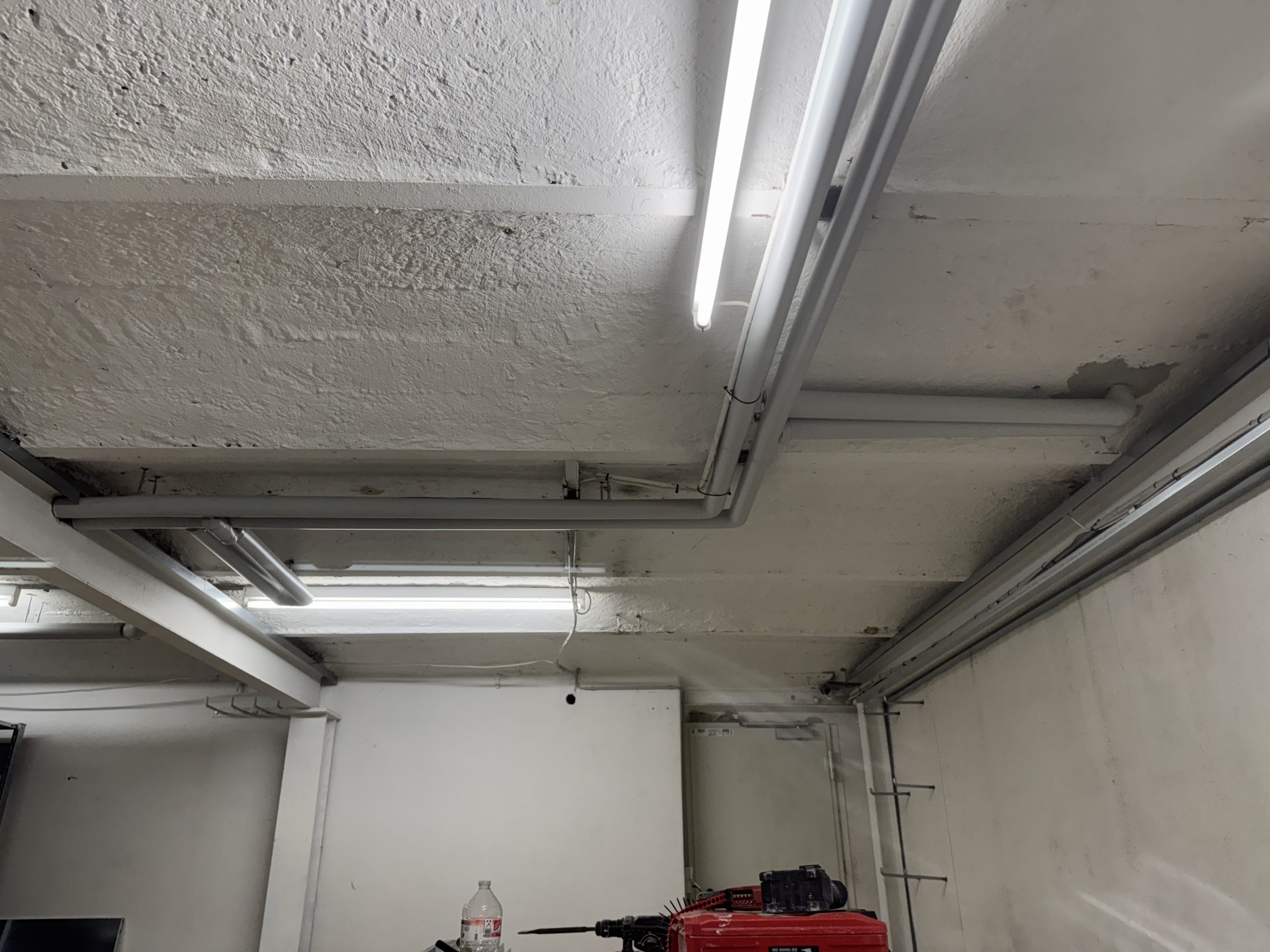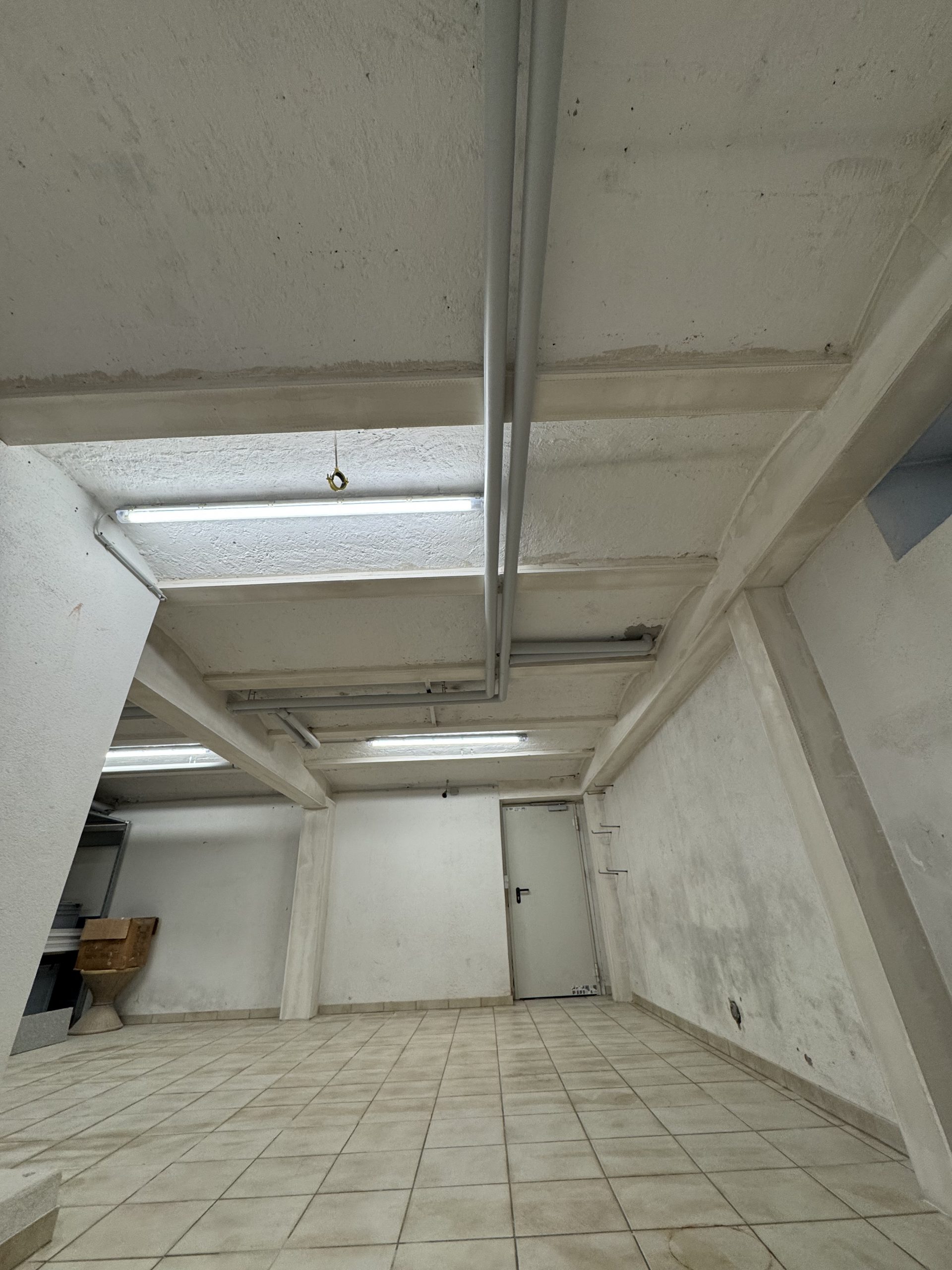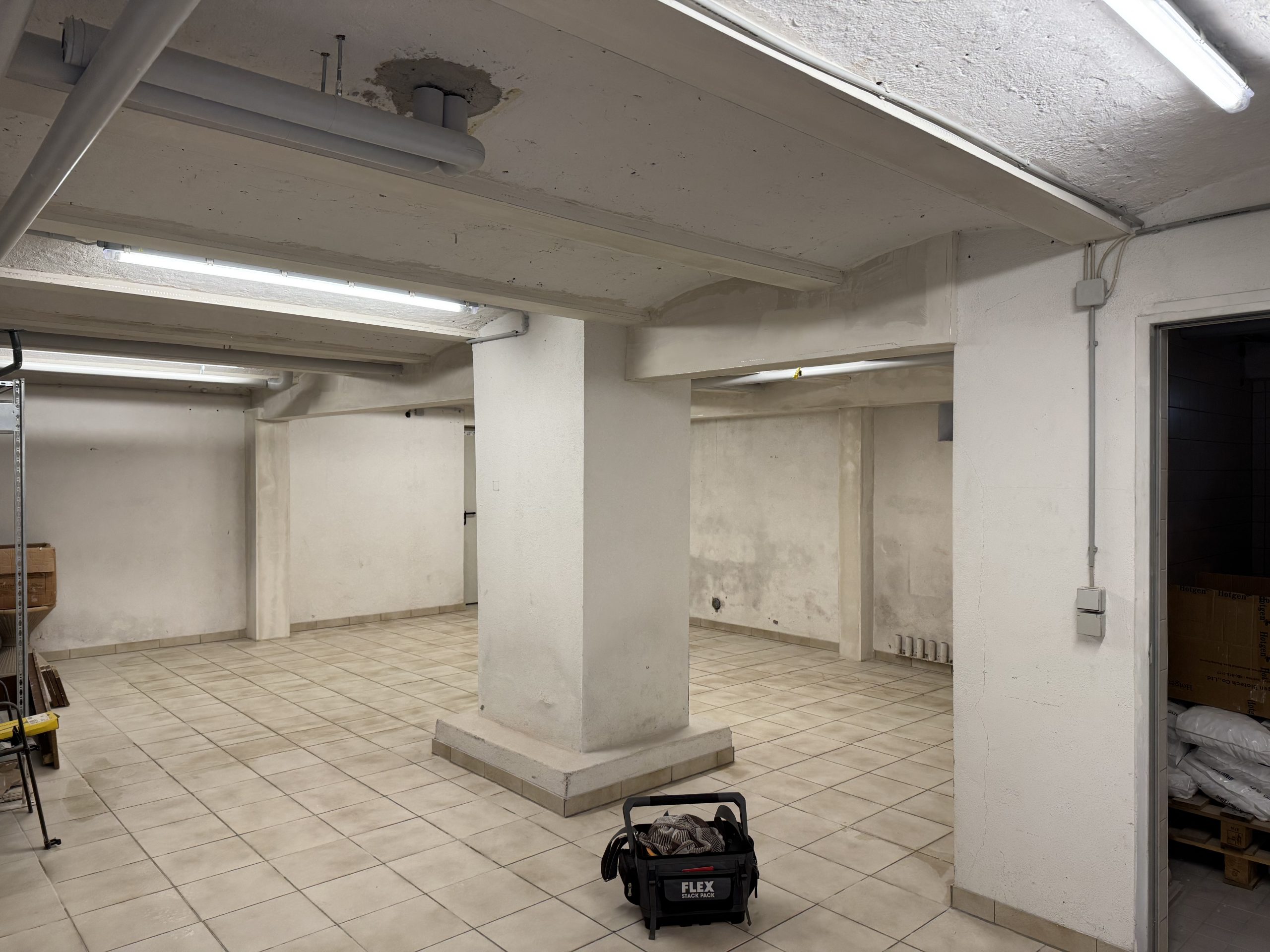 Im Keller wurden an den Stahlträgern brandschutztechnische Maßnahmen in Trockenbauweise durchgeführt, um die Sicherheitsanforderungen zu erfüllen und gleichzeitig eine saubere, fertige Oberfläche zu schaffen.