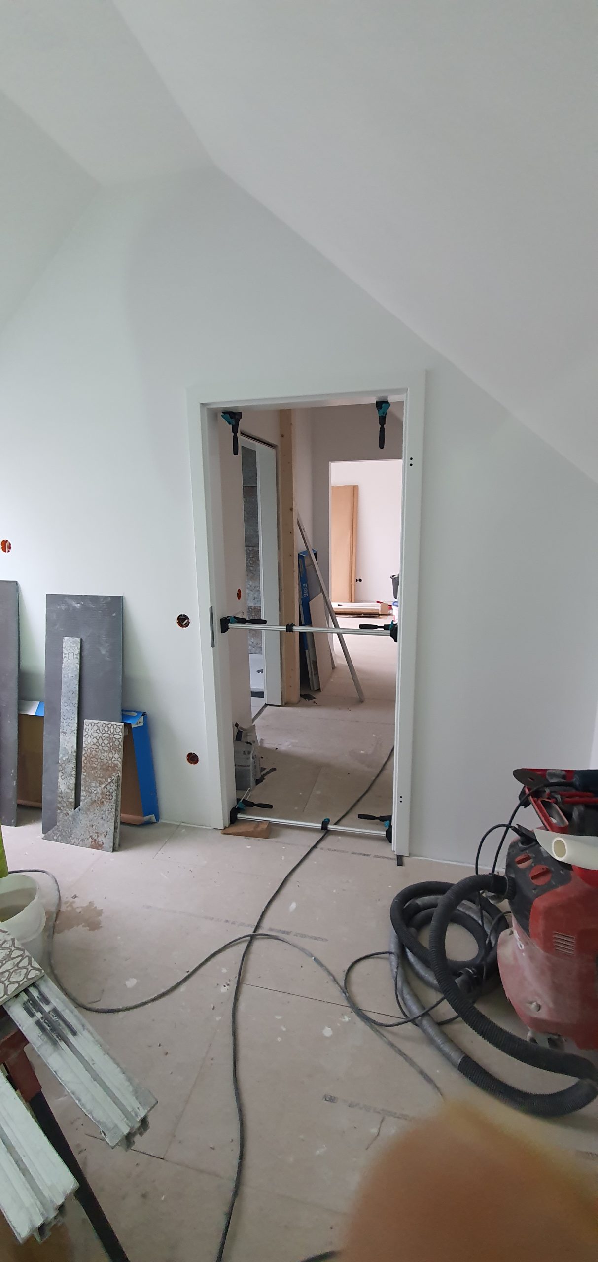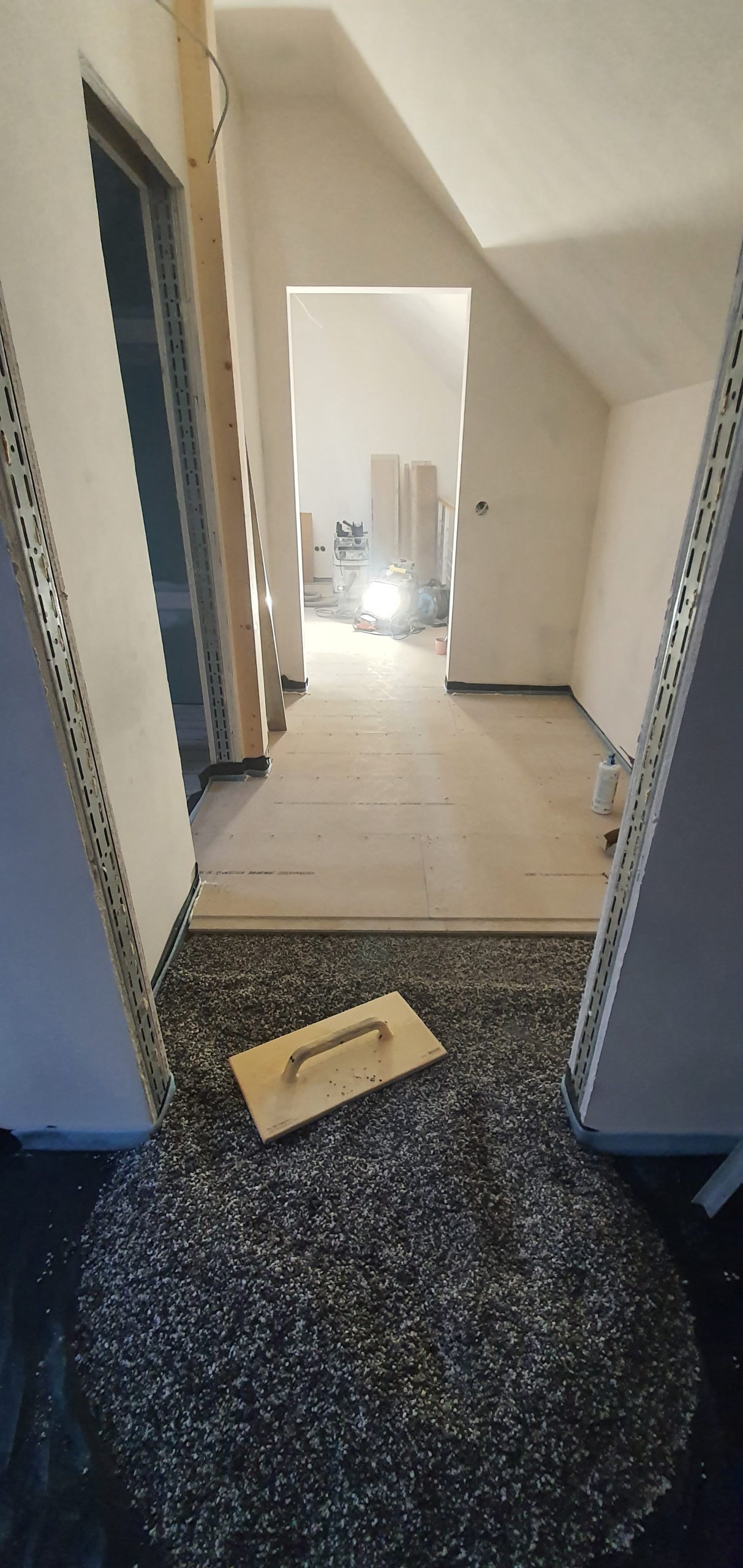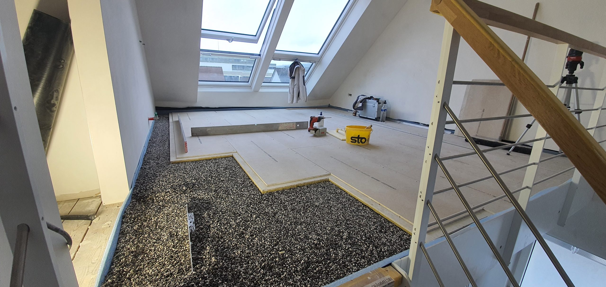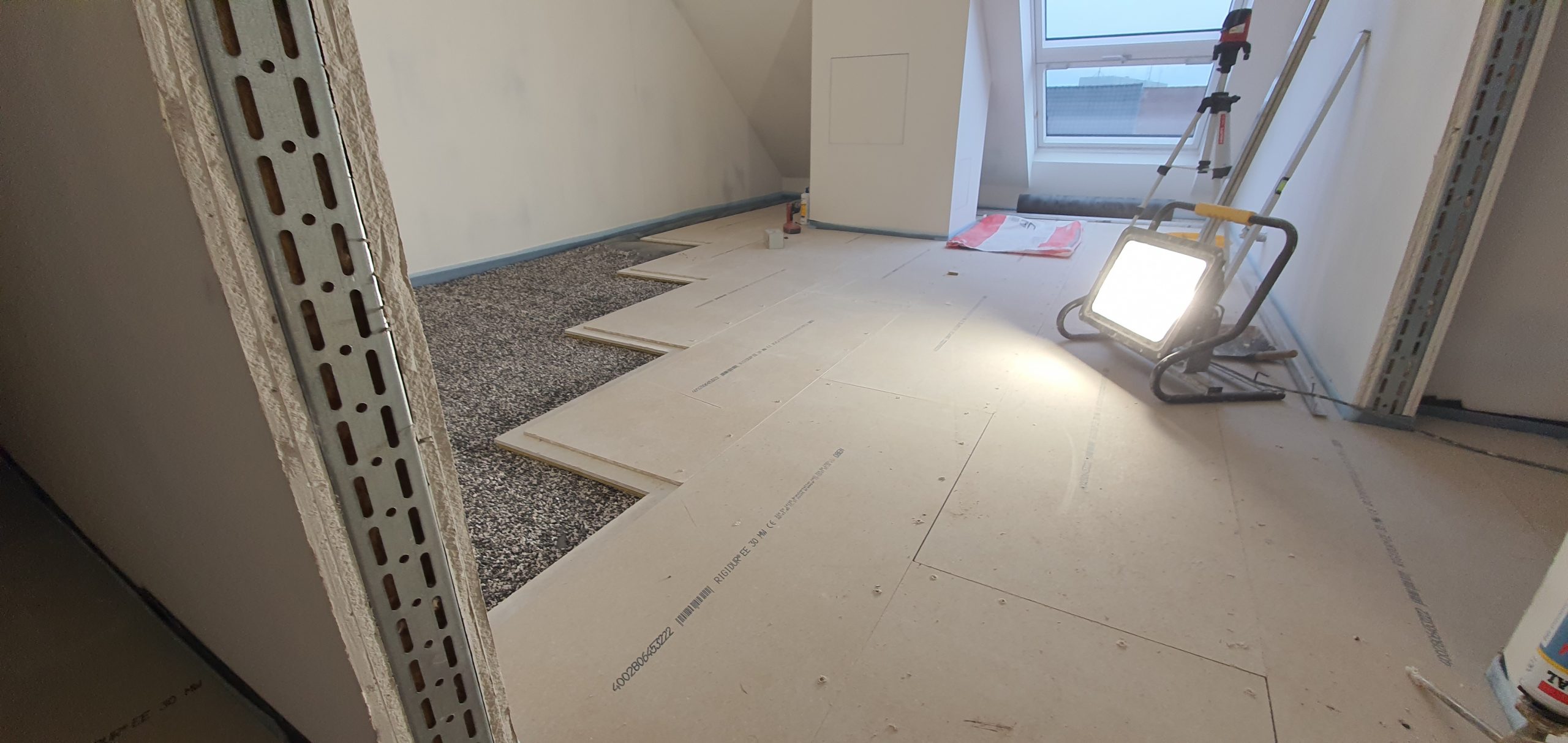 Mittels präziser Trockenbaukonstruktionen wurden neue Raumstrukturen geschaffen und die Grundrissorganisation grundlegend optimiert. Der Einsatz von Trockenestrich ermöglichte eine saubere, leichte und höhenoptimierte Bodenkonstruktion, ideal abgestimmt auf die Anforderungen des Bestands. Ergänzende Sanierungsmaßnahmen an vorhandenen Bauteilen stellten eine harmonische Verbindung zwischen Alt- und Neubereich her.