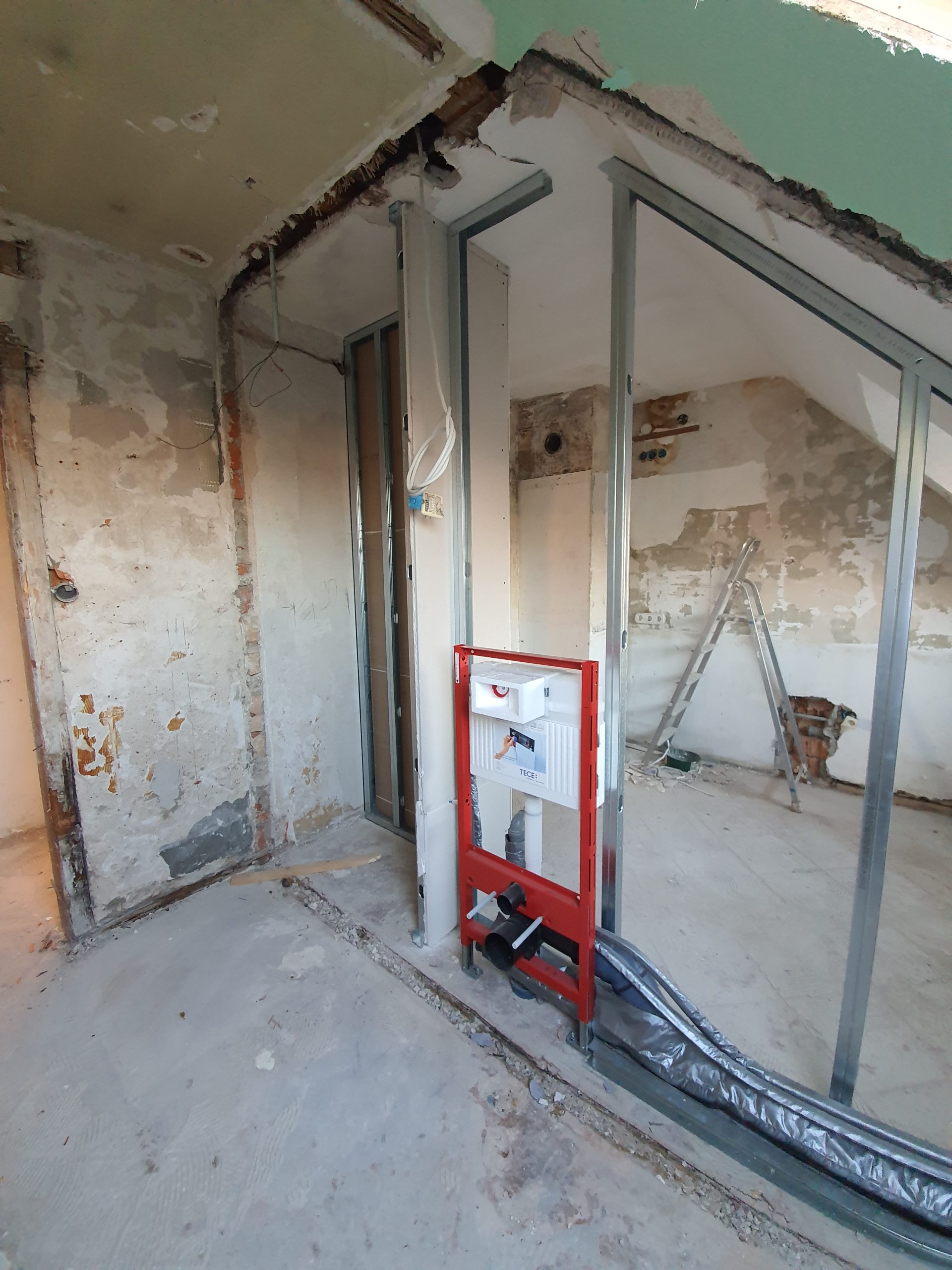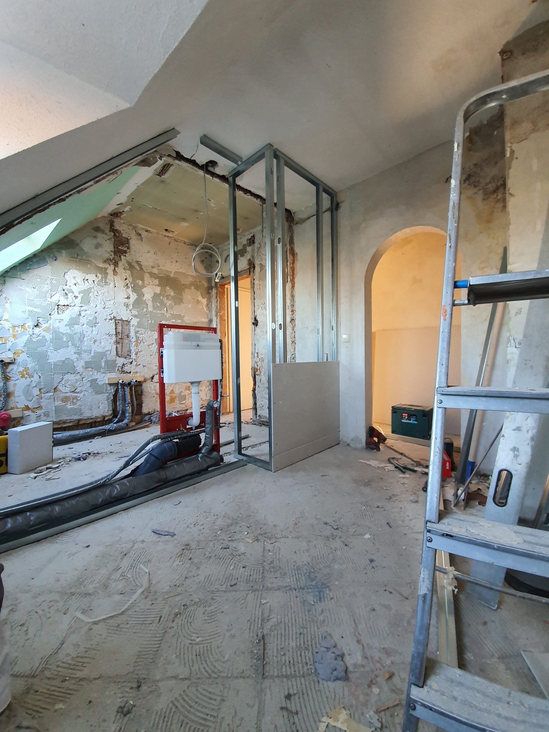 Die Bereiche Küche und Bad wurden in Trockenbauweise neu aufgeteilt und gestaltet, wodurch eine optimierte Raumaufteilung und zeitgemäße Nutzung realisiert werden konnte.