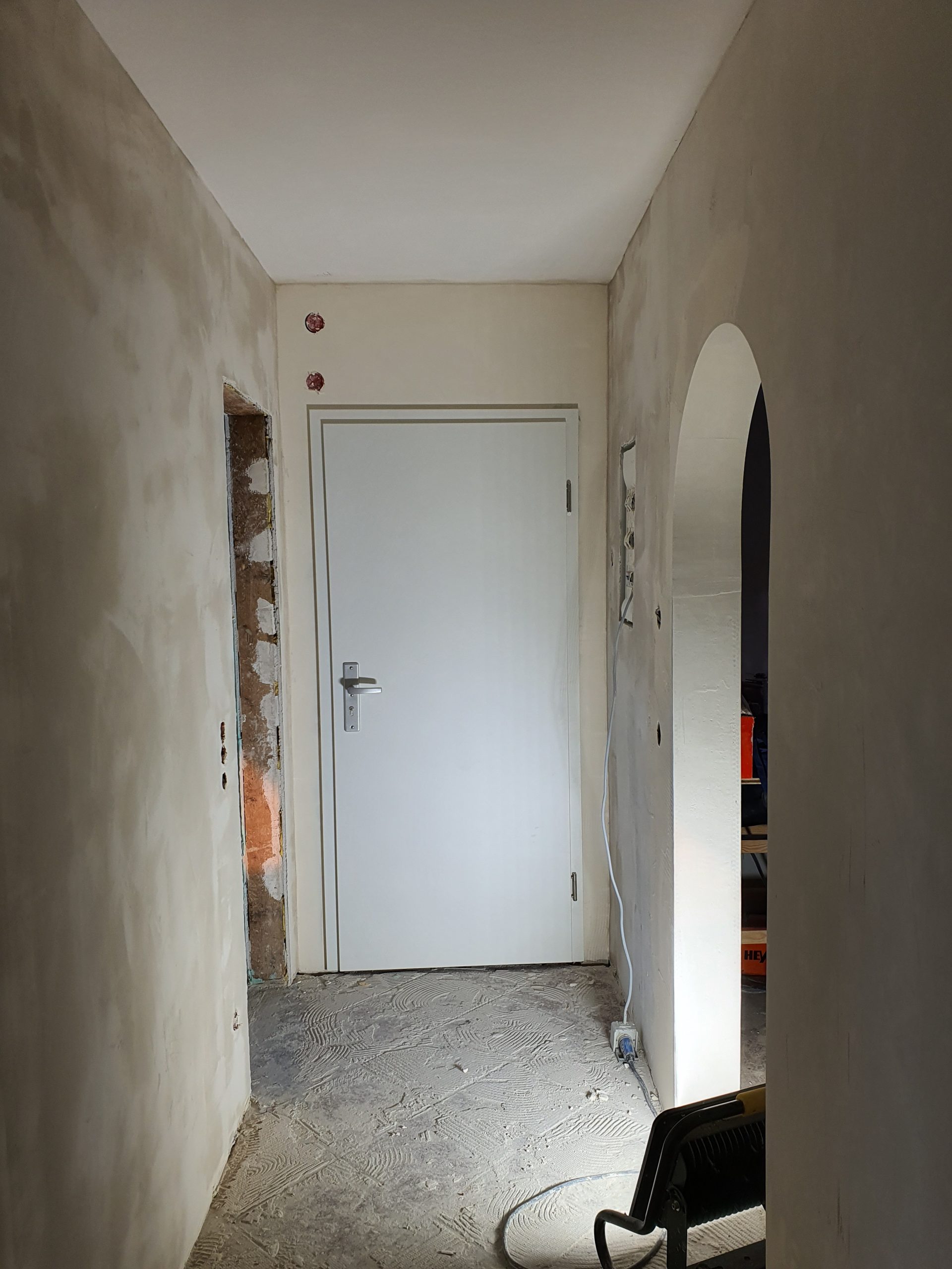 Sämtliche Wandflächen wurden in Q3 gespachtelt und bilden eine ebene, hochwertige Grundlage für die abschließende 1 mm Feinputz-Beschichtung als Endoberfläche.